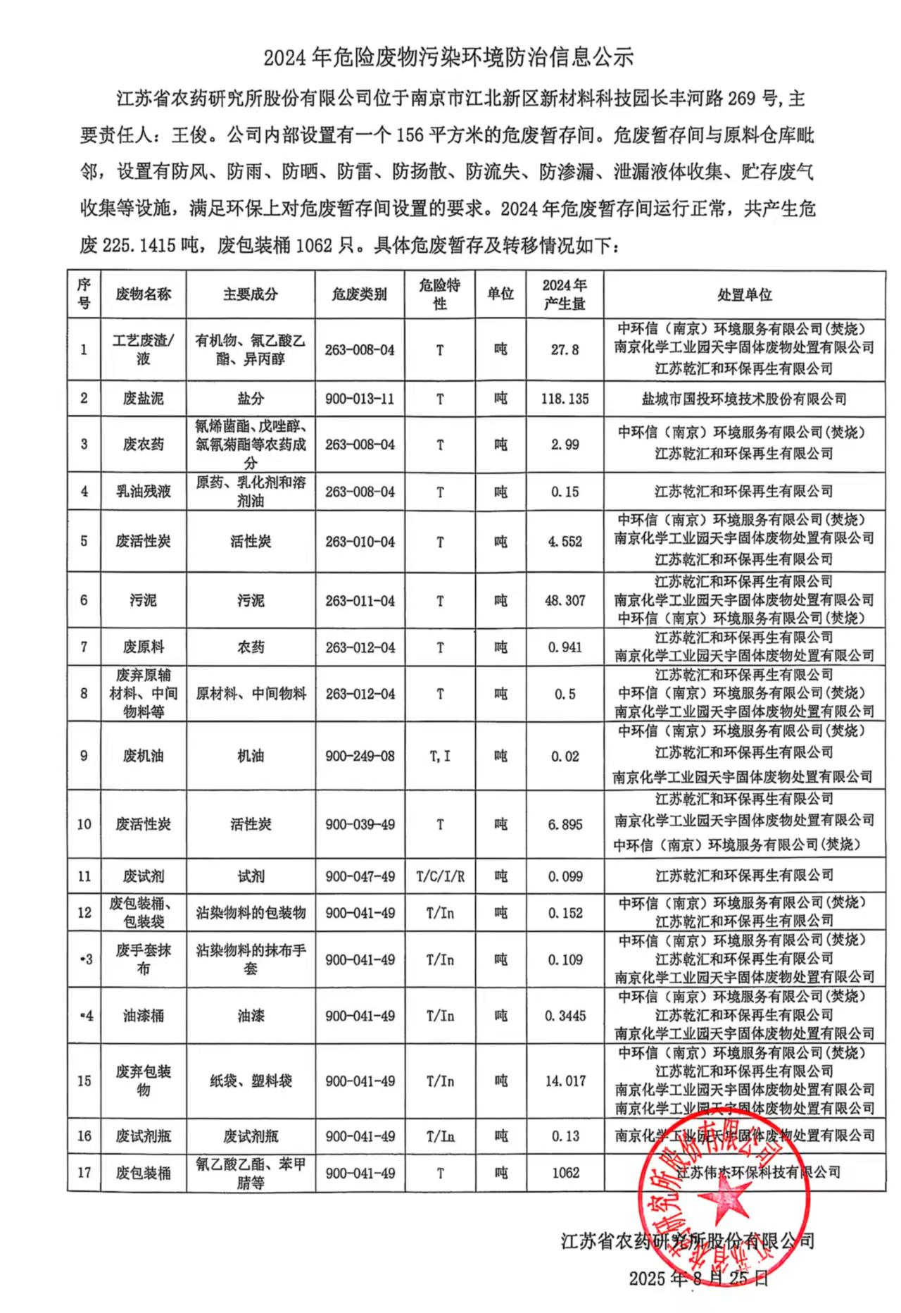 2024年危險廢物污染環境防治信息公示